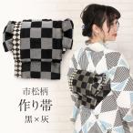 浴衣帯 作り帯 黒 灰 市松 おしゃれ 夏 日本製